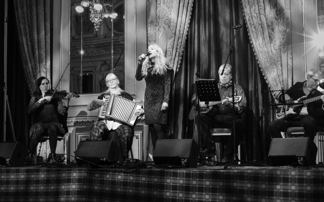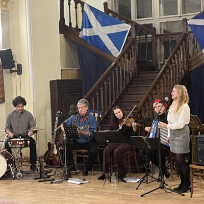 Big Burns Night a Marriott Hotelben, Wee Burns Supper a St. Columba Church Webster Hall termében! A skót költőt ünnepeltük ezen a két eseményen, ahol a Dagda zenekar kísérte az énekemet. Táncos forgatag, skót ételek, whiskey és versek… igazán elememben voltam.